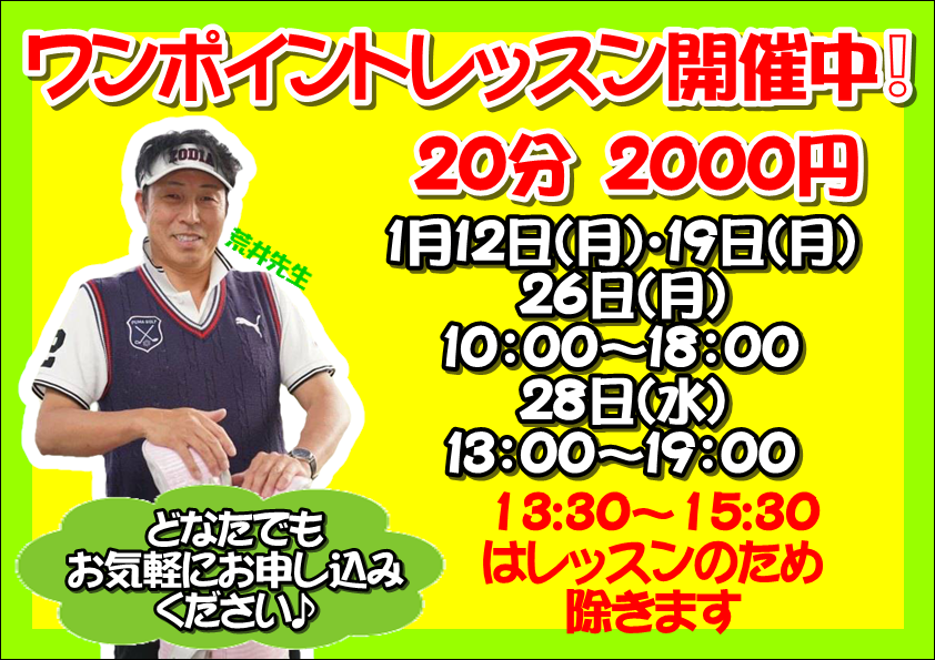 日本プロゴルフ協会A級ティーチングプロの私は、「遊びに本気なゴルフレッスン」をモットーにしています。初めての方から、基本からもう一度学びたい方まで、どなたでも歓迎です! 「始めてみよう!」「やってみよう!」という気持ちがあれば大丈夫です! スクール生によるラウンドレッスンや定期的なイベントも開催!! 一緒に楽しくゴルフの上達を目指しましょう。